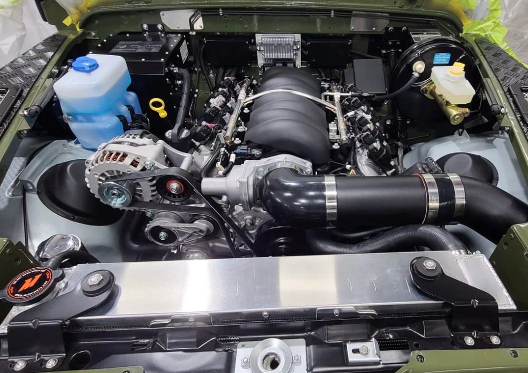 This is a parts kit to do the complete LS3/10L90E Automatic transmission swap into your land rover defender 90/110/130 including custom driveshafts, fuel pump, fuel line, radiator, mounts, adapters, hoses, power steering fittings, AC compressor, high and low power steering lines, exhaust crossover, belts, etc.