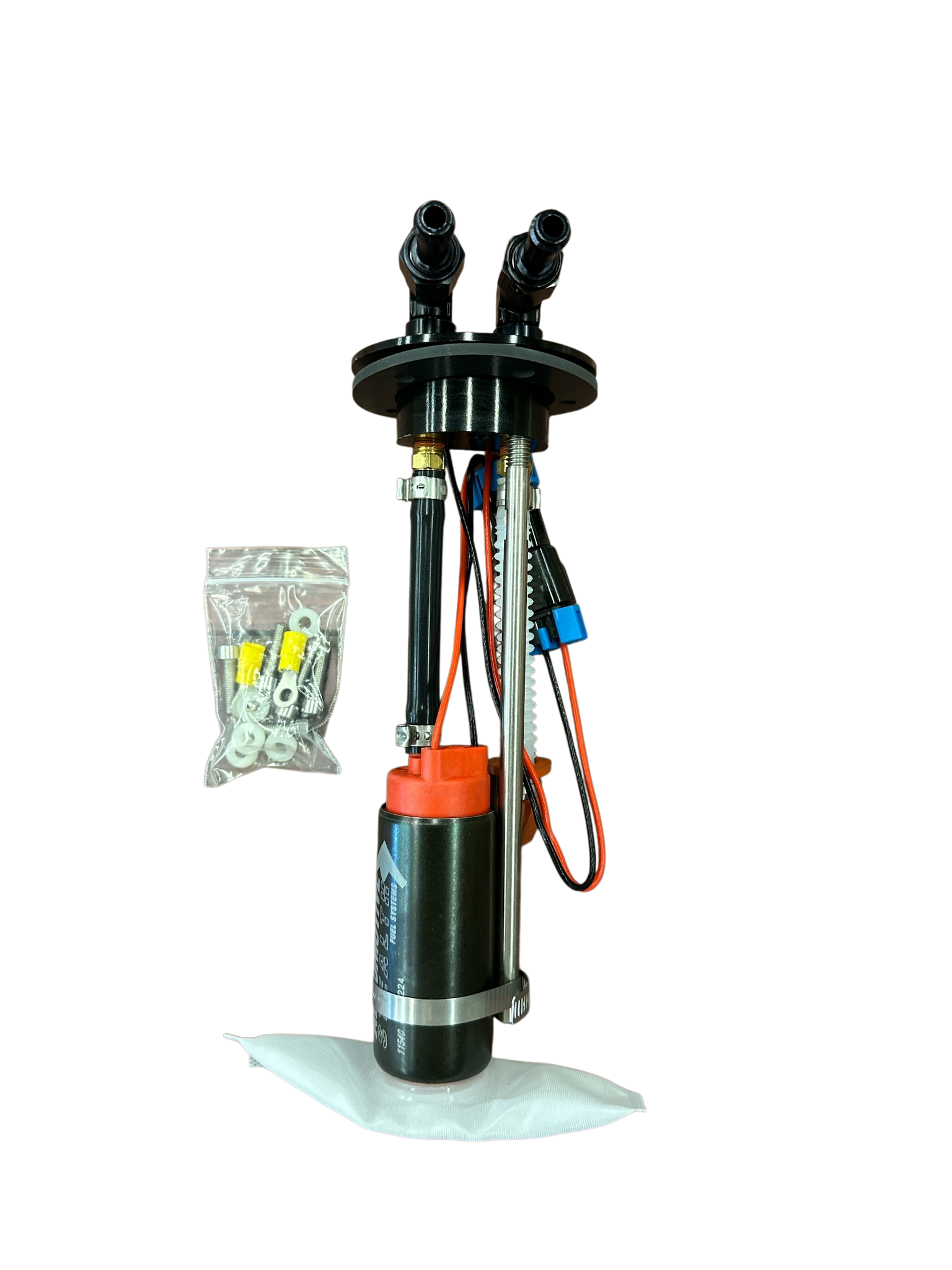 THIS PUMP MOUNTS IN THE FACTORY HOLE WHERE THE ORIGINAL DIESEL PICK-UP WAS LOCATED. SUPPORTS UP TO 650HP.